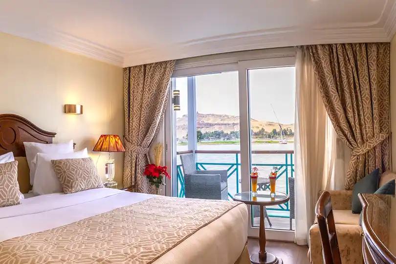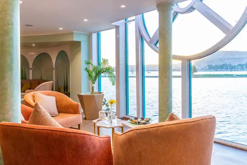 The Sonesta Moon Goddess Nile Cruise is a 5-star luxury cruiser that takes you on an unforgettable journey between Luxor and Aswan. On board, you’ll enjoy modern comfort, elegant design, and world-class hospitality. The ship features 49 stylish cabins with sliding glass doors that open onto private balconies, as well as 4 presidential suites each with its own lounge, giving you the perfect view of the Nile in total privacy.